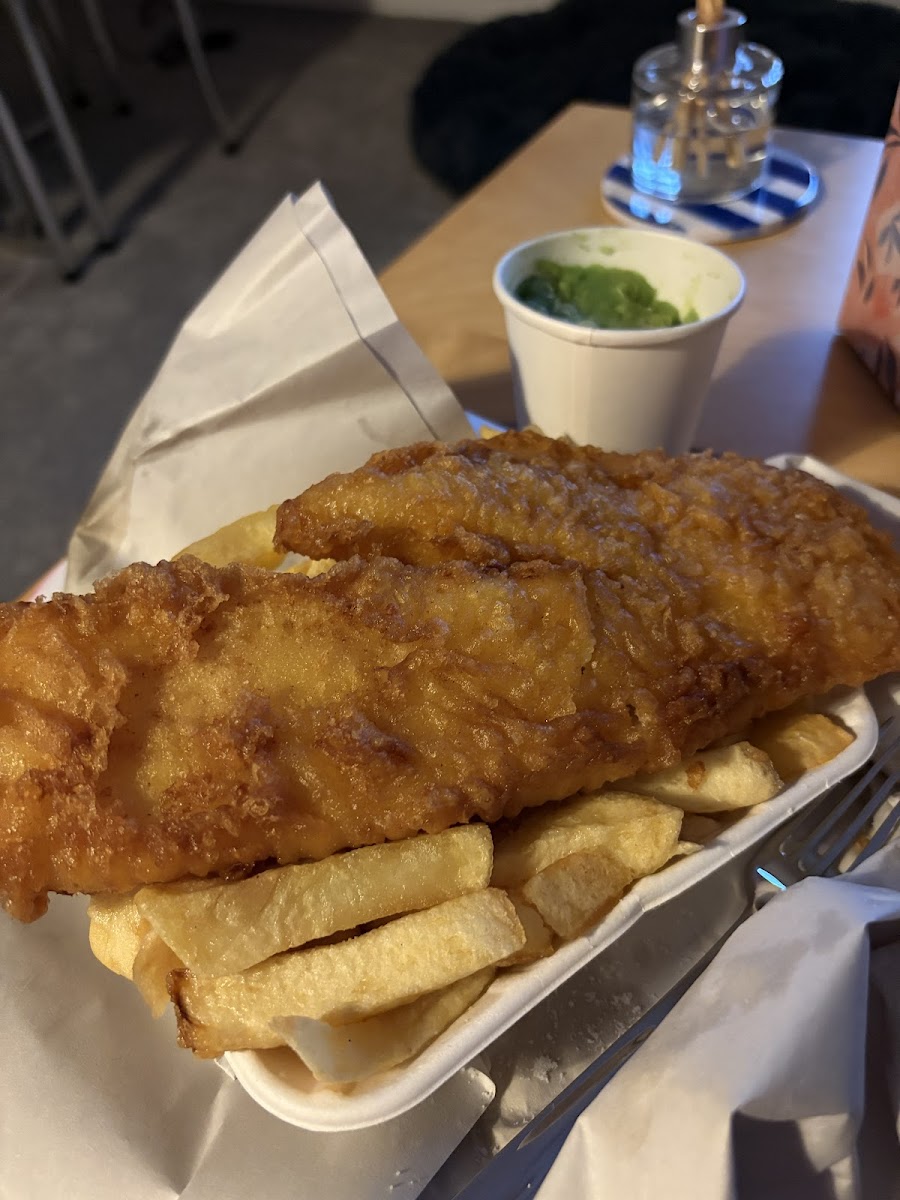 Absolutely superb fish and chips. Cheaper than any chippie on Brighton seafront. Less than a tenner for medium haddock and chips. It's our go to destination whenever we come down from London. You won't be disappointed.